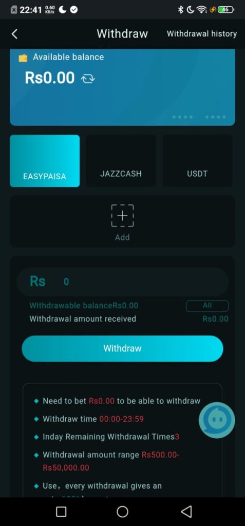 - Add your Easypaisa or JazzCash wallet to make withdrawals.