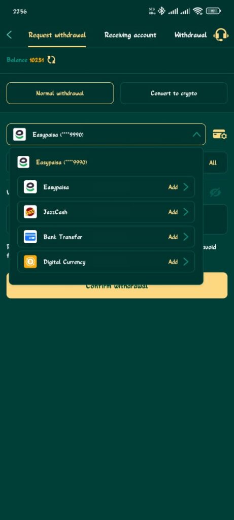 - Withdrawals: It took less than six minutes to receive the Easypaisa payout.