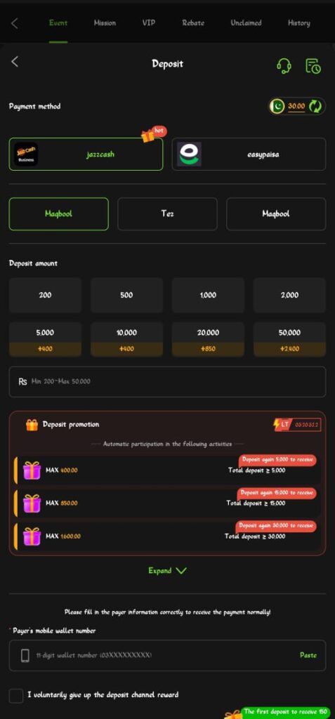 Linked with JazzCash and Easypaisa, VG70 ensures fast transactions. You can deposit within seconds and withdraw your winnings safely in just a few clicks.