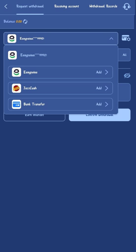 - Select the mode of withdrawal (Bank, JazzCash, or Easypaisa).