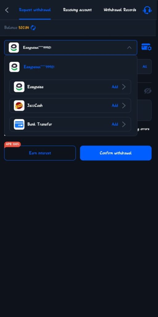 Use JazzCash, Easypaisa, or Bank Transfer for withdrawals.