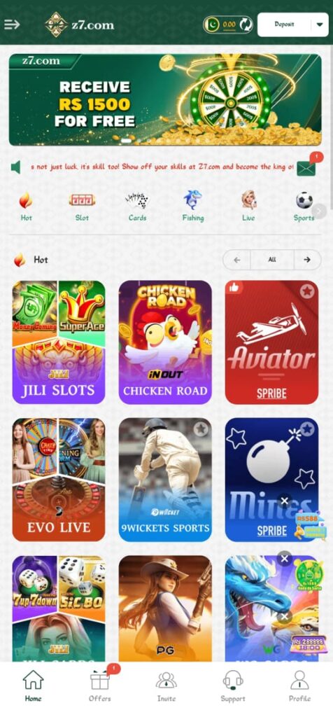 Z7 Game Casino is a real-money gaming site for Pakistani players that offers hundreds of games, guaranteed withdrawals, and enticing cash prizes. Whether you’re interested in slot machines, card games, live casino tables, or the Z7 Aviator Predictor, this app offers multiple opportunities to earn money.